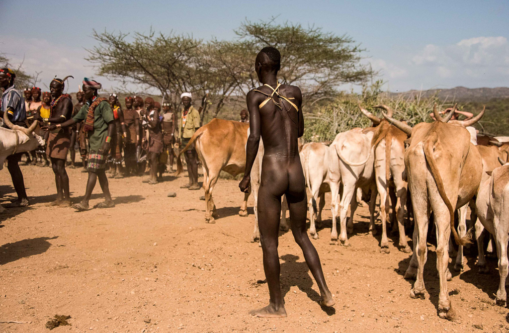 The Hamer people are specially known for their remarkable hair style and body decoration. After killing a dangerous animal or enemy, the men are allowed to wear a clay hair bun with some large ostrich feathers. Also famous is the ceremony of the Bull Jumping: young men who have reached the age to marry have to be tested by jumping from one bull to another without falling. If a young man falls, he can try it once more, but when he falls a second time he is beaten by the women and will be an outcast for the rest of his life.