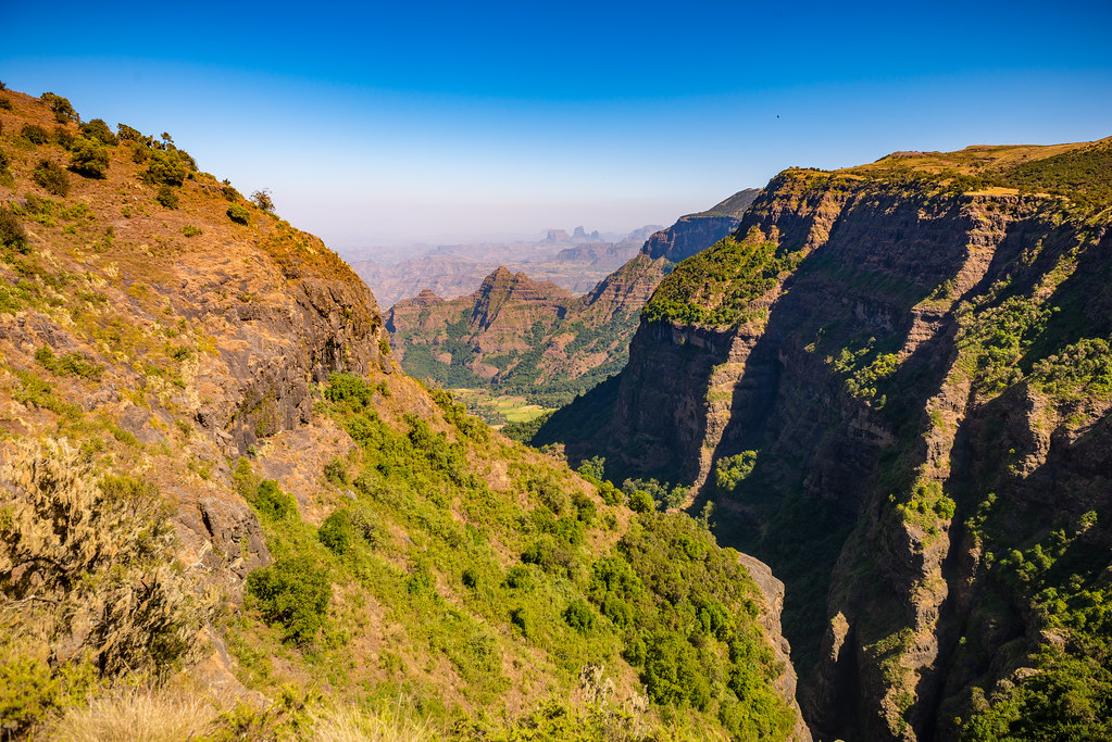 From Sankober, depart into a valley, through which the Wazla (or Koba) River runs. (This river is often dry). Coming out of the valley you will have views of the Jinbar River waterfalls falling into the Geech Abyss. Continuing along, you will cross the Jinbar River and ascend into the village of Geech. Total trekking time: 4-5 hours